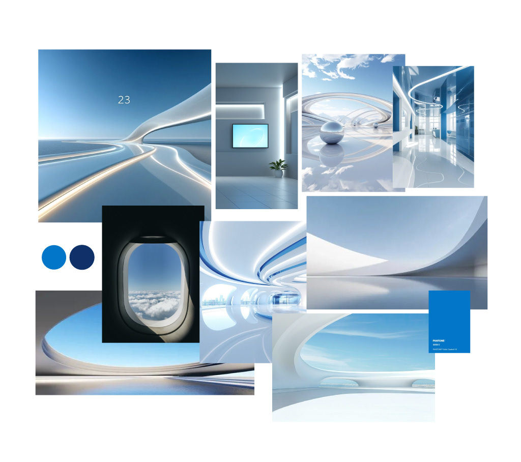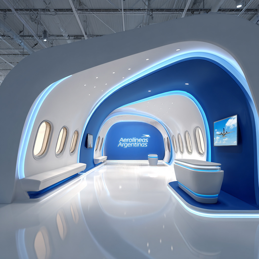 This is a conceptual design for an airline exhibition booth. A personal exploration that combines brand identity with futuristic architecture and immersive spatial design. Created as part of my practice in experiential and aviation-related projects.